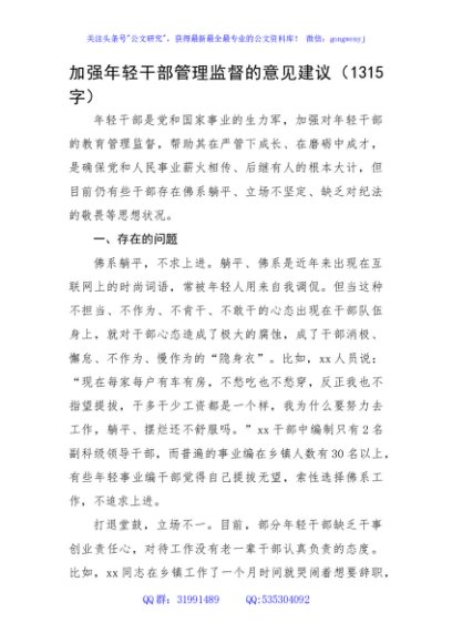 / 加强年轻干部管理监督的意见建议