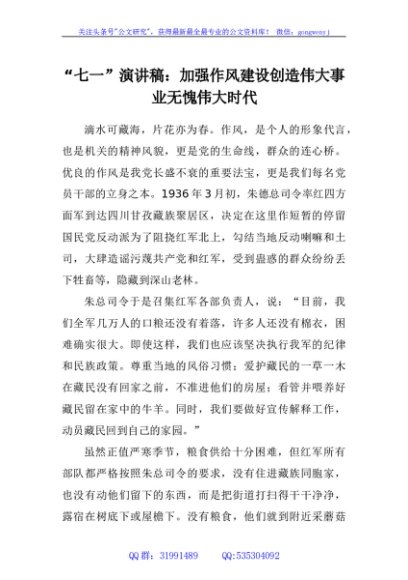 “七一”演讲稿:加强作风建设创造伟大事业无愧伟大时代