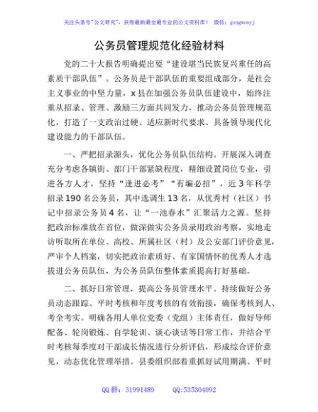 / 公务员管理规范化经验材料