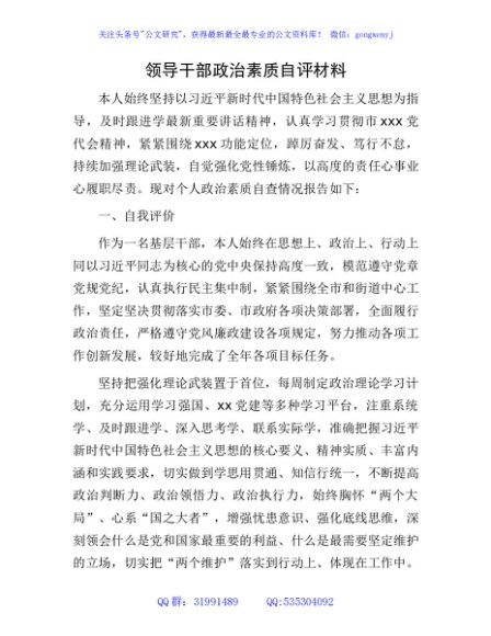 / 领导干部政治素质自评3300字