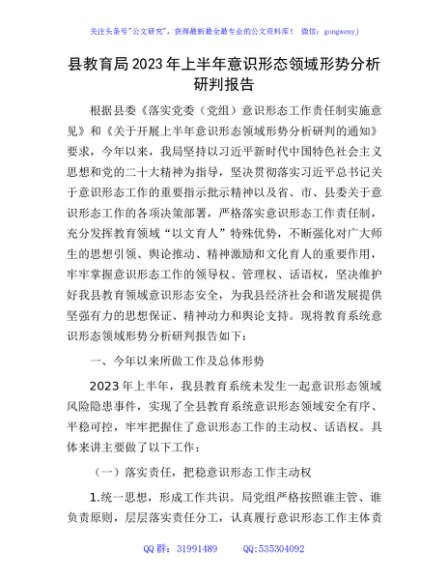 / 县教育局2023年上半年意识形态领域形势分析研判报告2600字