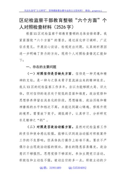 / 区纪检监察干部教育整顿“六个方面”个人对照检查材料