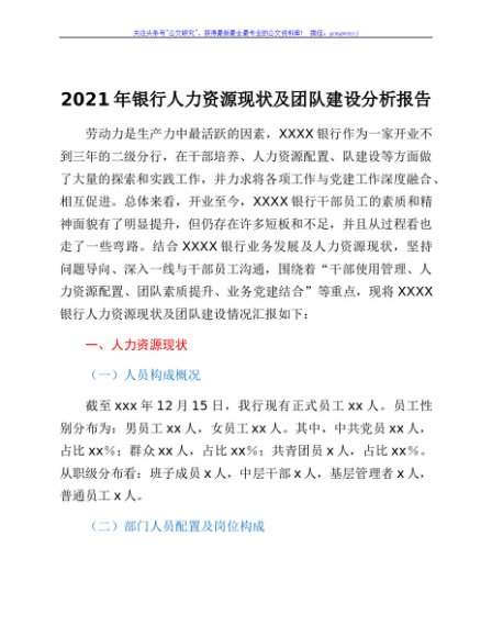 / 2021年国企银行人力资源现状及团队建设分析报告