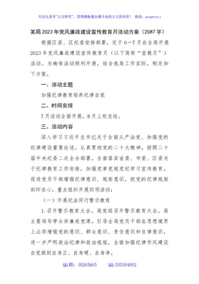 / 某局2023年党风廉政建设宣传教育月活动方案