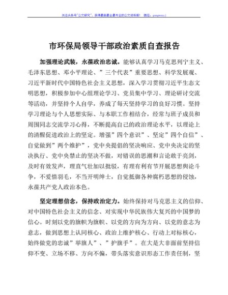 / 市环保局领导干部政治素质自查报告