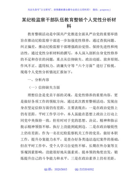 / 纪检监察干部队伍教育整顿个人党性分析3100字(六个方面)
