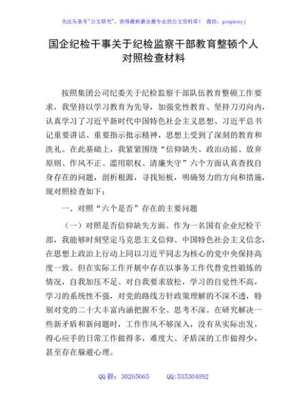 / 国企纪检干事纪检监察干部教育整顿个人检视对照检查(公司2800字)