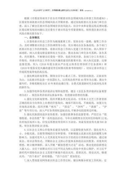 / X区委宣传部关于全区意识形态风险隐患情况排查报告