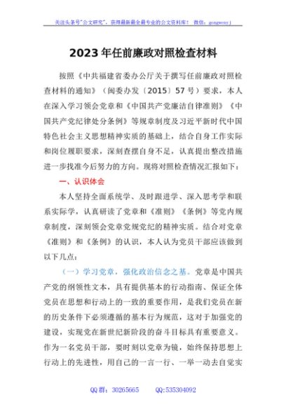 / 2023年任前廉政对照检查材料