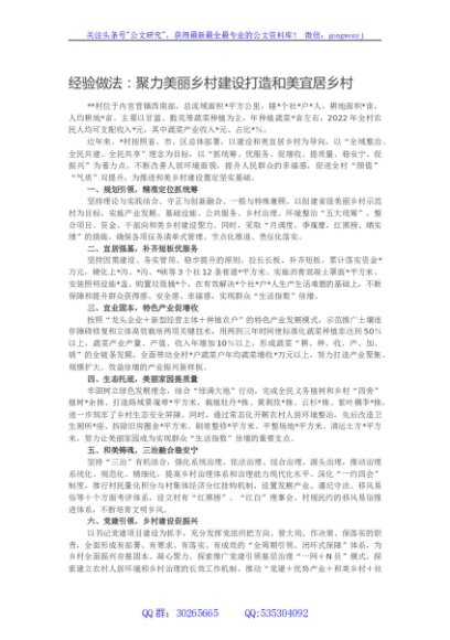 / 经验做法:聚力美丽乡村建设打造和美宜居乡村