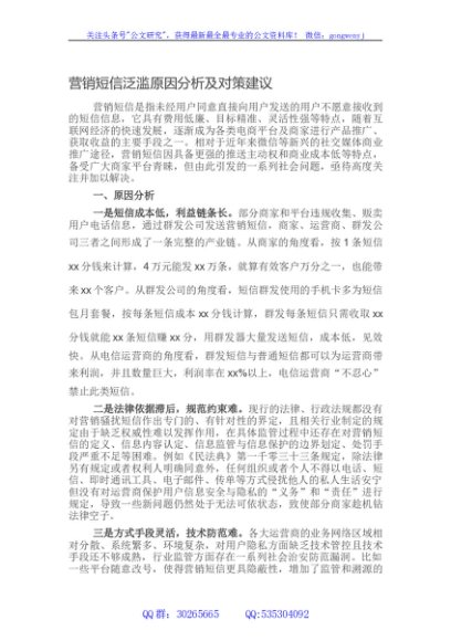 / 营销短信泛滥原因分析及对策建议