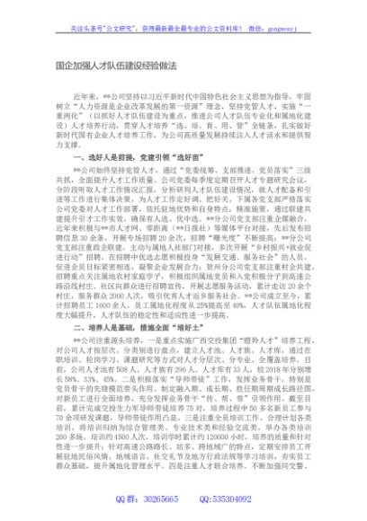 / 国企加强人才队伍建设经验做法
