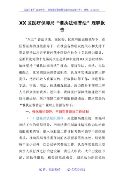 / 区医疗保障局“谁执法谁普法”履职报告