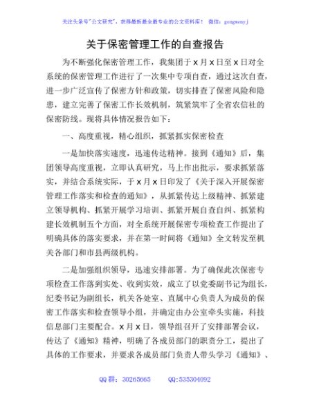 / 保密管理工作的自查报告3600字