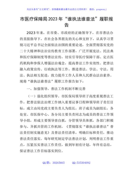 / 医保系统2023年“谁执法谁普法”履职报告