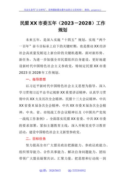 / 民盟市委五年(2023-2028)工作规划