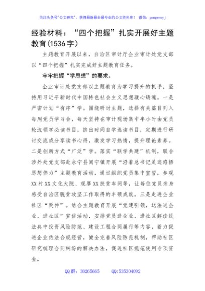 / 经验材料:“四个把握”扎实开展好主题教育