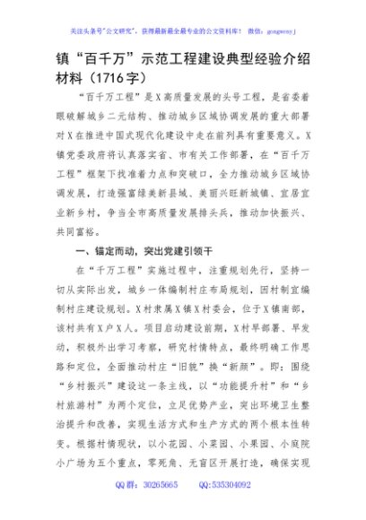 / 镇“百千万”示范工程建设典型经验介绍材料