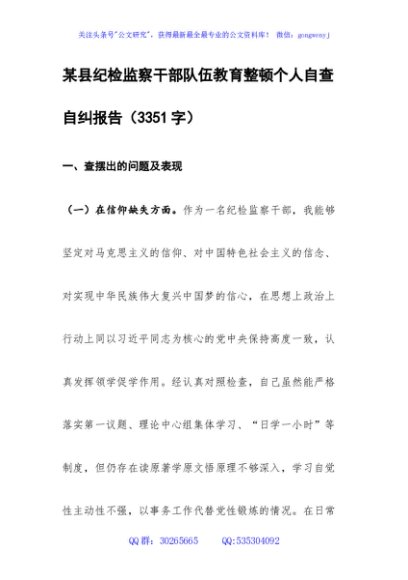 纪检监察干部队伍教育整顿个人自查自纠报告