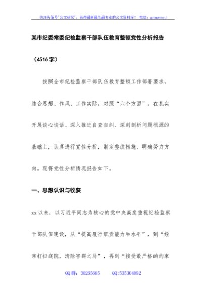市纪委常委纪检监察干部队伍教育整顿党性分析报告