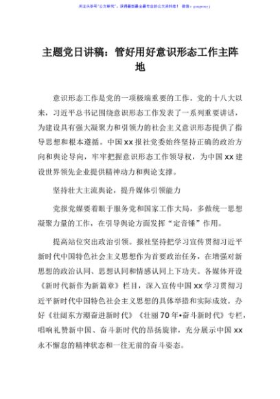 / 主题党日讲稿管好用好意识形态工作主阵地