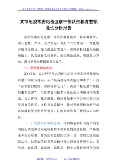 / 某市纪委常委纪检监察干部队伍教育整顿党性分析报告