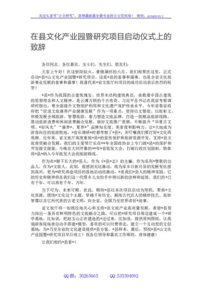 / 在县文化产业园暨研究项目启动仪式上的致辞
