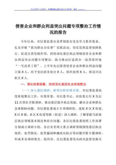 / 侵害企业和群众利益突出问题专项整治工作情况的报告