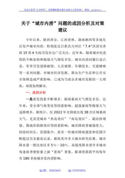 / 关于“城市内涝”问题的成因分析及对策建议