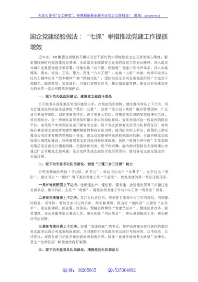/ 国企党建经验做法:七抓举措推动党建工作提质增效