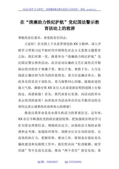 / 在“清廉助力 铁纪护航”党纪国法警示教育活动上的致辞