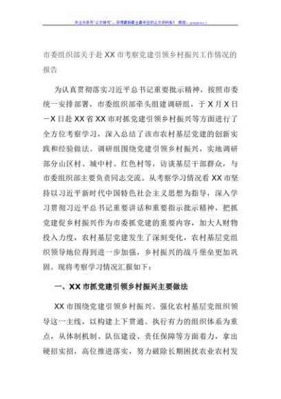/ 市委组织部关于赴XX市考察党建引领乡村振兴工作情况的报告