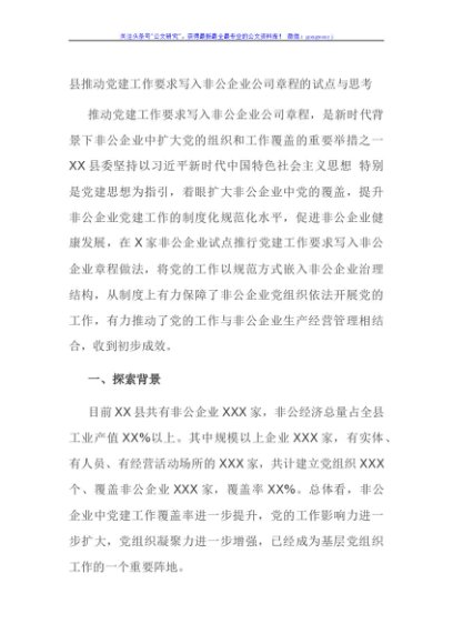 / 县推动党建工作要求写入非公企业公司章程的试点与思考