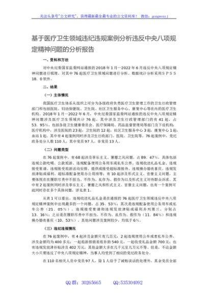 / 基于医疗卫生领域违纪违规案例分析违反中央八项规定精神问题的分析报告