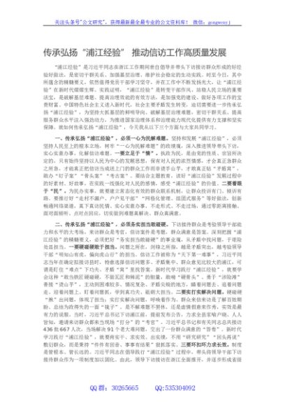 / 传承弘扬浦江经验推动信访工作高质量发展