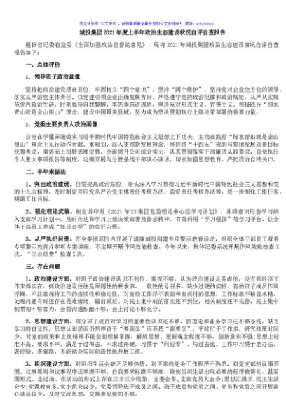 / 城投集团2021年度上半年政治生态建设状况自评自查报告