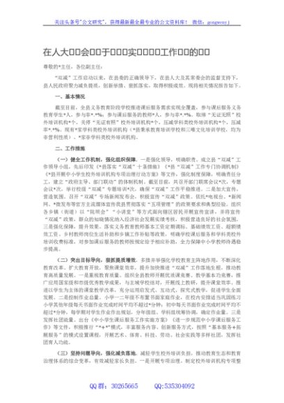 / 在人大常委会上关于贯彻落实“双减”工作情况的报告