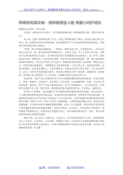 / 师德师风演讲稿:用师德塑造人格 用爱心呵护成长