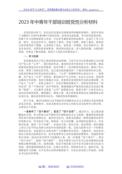/ 2023年中青年干部培训班党性分析材料