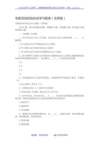 专题活动应知应会学习题库(含答案)