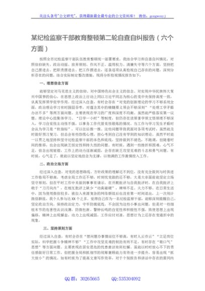 / 某纪检监察干部教育整顿第二轮自查自纠报告(六个方面)