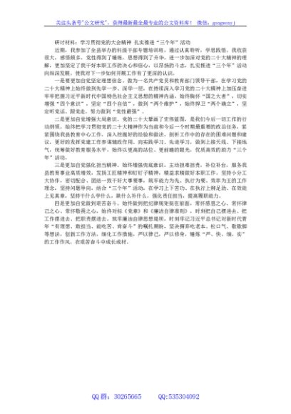 / 研讨材料:学习贯彻党的大会精神 扎实推进三个年活动