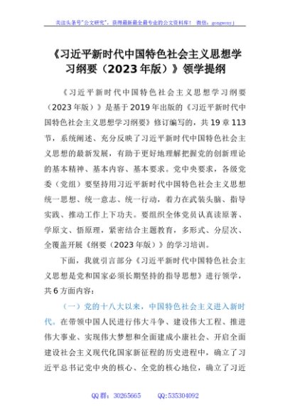 / 《习近平新时代中国特色社会主义思想学习纲要(2023年版)》领学提纲