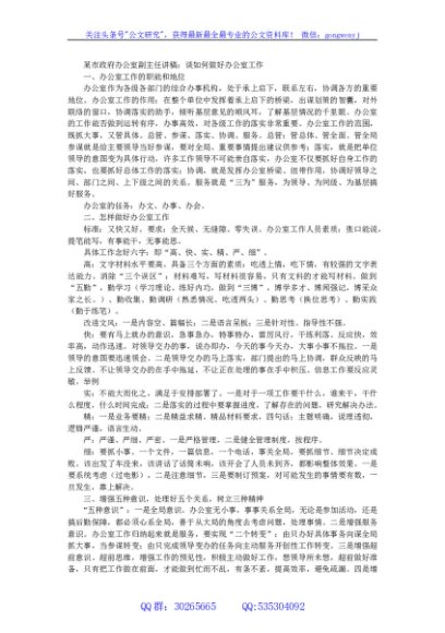 / 某市政府办公室副主任讲稿:谈如何做好办公室工作