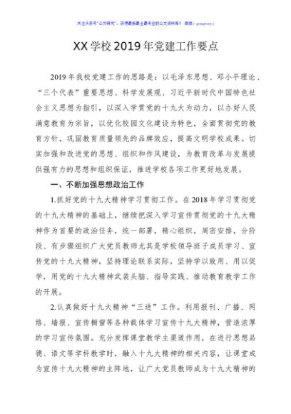 / XX学校2019年党建工作要点