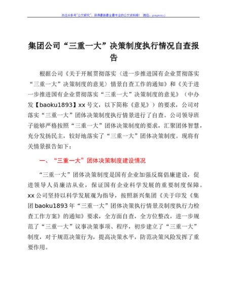 集团公司“三重一大”决策制度执行情况自查报告