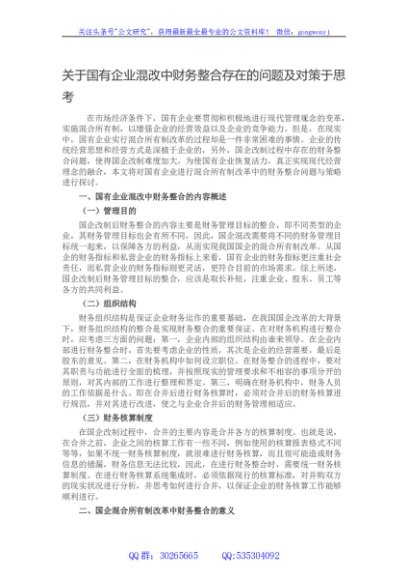 关于国有企业混改中财务整合存在的问题及对策于思考