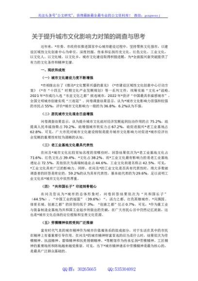 关于提升城市文化影响力对策的调查与思考