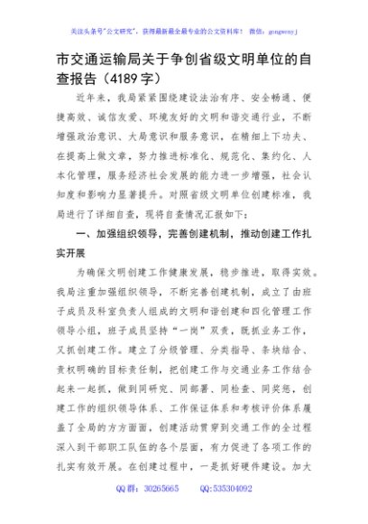 / 市交通运输局关于争创省级文明单位的自查报告