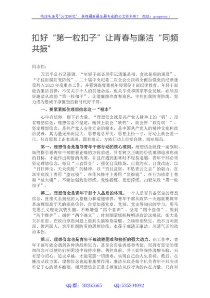 / 扣好“第一粒扣子”让青春与廉洁“同频共振”